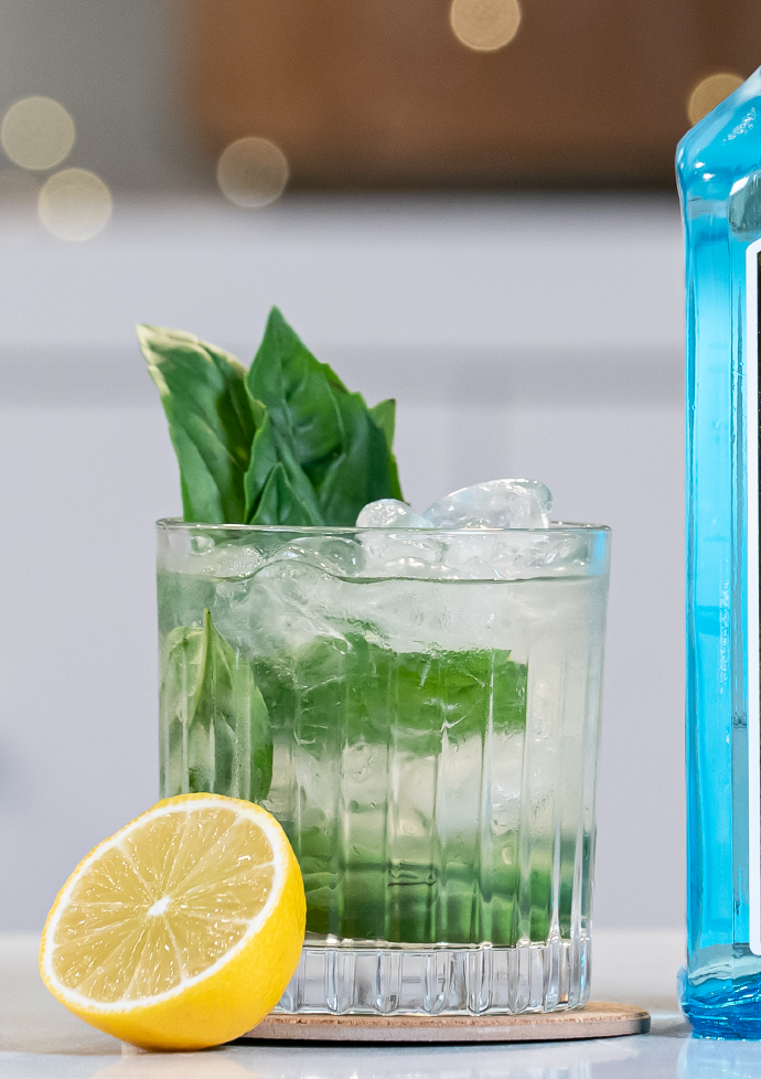 Gin & Basil Smash. The cocktail name is also the method, who thought of that! Take some Gin, Lemon, and Basil, muddle it up and you're good to go.