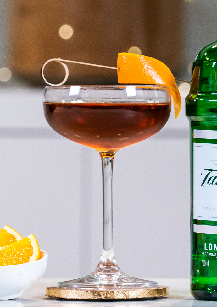 Don’t let the name fool you, this Red Herring will never lead you astray. Made with coffee beans, gin, lemon, and cherry brandy, this cocktail is bold in both colour and flavour.