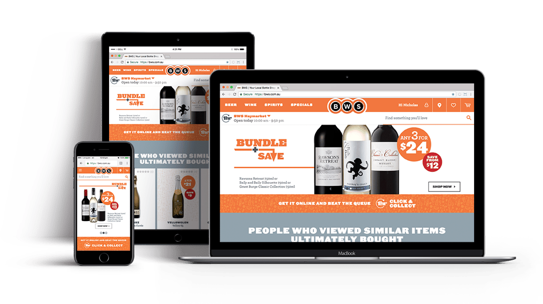 Partnering with global technology leaders, BWS serves fast, rich and relevant personalised content that aligns online and in store sales and enables greater capacity to evaluate attribution across multiple channels to support business marketing and sales functions. Supporting this is a clear and intuitive site that combines best practice design principles with industry leading technology that puts the customer at the centre of the experience.