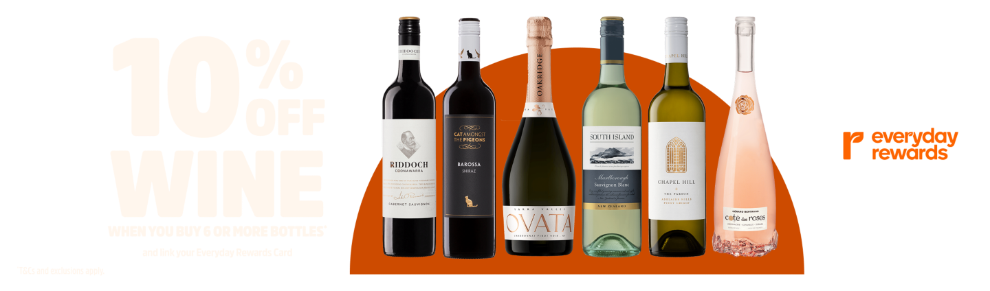This offer is current and will end with prior reasonable notice. Available at BWS Online, in-store at BWS and on the BWS App. 10% off wine offer applies when you buy 6 or more bottles of wine (offer excludes wine based spirits, fortified wine over 1.5L, cask wine (incl. Bagnums), Cleanskin Cab Merlot and Cleanskin Chardonnay 6 x 750ml) in a single transaction and scan your registered Everyday Rewards Card at checkout. Stores and delivery areas located in the Northern Territory or that are subject to liquor restrictions such as dry zones are not eligible for the offer. If shopping online viahttps://bws.com.au or via the BWS App, ensure your registered Everyday Rewards Card is linked to your BWS account before completing the transaction. Offer available only to registered Everyday Rewards Card holders aged 18 years and over. Stock availability varies by store. Prices advertised via digital communications are based on pricing in the state that your Everyday Rewards Card is registered for. Drink responsibly.